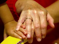 Timothy Anderson helps his daughter Juju Anderson, two and half, prepare food for feeding the fish at home in the Plains, Ohio on October 1, 2011.
